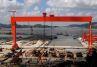 선박 제조 및 선착장에 사용되는 선박 갠트리 크레인은 지상 운송에서 선박 제조에 필요한 모든 부품 (늑골, 강철, 강철 등)을 제조 장소에 투입하는 임무를 수행합니다. 이 운송 작업은 운송시 매우 긴 여정에서 작업을 신속하게 완료 할 수 있어야합니다. 그러므로 전체 크레인의 수는 기초 전체의 도크 지역에 도달하기에 충분하며, 각 크레인은 서로 원칙적으로 서로 간섭합니다.